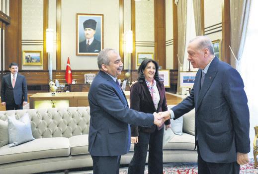 Başkan Recep Tayyip Erdoğan, “Terörsüz Türkiye” hedefi doğrultusunda önemli bir adım atarak DEM Parti milletvekilleri Pervin Buldan ve Sırrı Süreyya Önder ile görüştü. MHP Genel Başkanı Devlet Bahçeli’nin çağrısıyla başlayan süreçte DEM Parti heyetinin görüştüğü terörist elebaşı Abdullah Öcalan, 27 Şubat’ta terör örgütü PKK’ya “silah bırakma” ve “fesih” çağrısı yapmıştı. DEM Parti’nin İmralı heyeti de, görüşme için 12 Mart’ta Erdoğan’dan randevu istemişti. Beklenen görüşme dün gerçekleşti. Külliye’deki kabulde AK Parti Genel Başkanvekili Efkan Ala ile MİT Başkanı İbrahim Kalın da yer aldı.